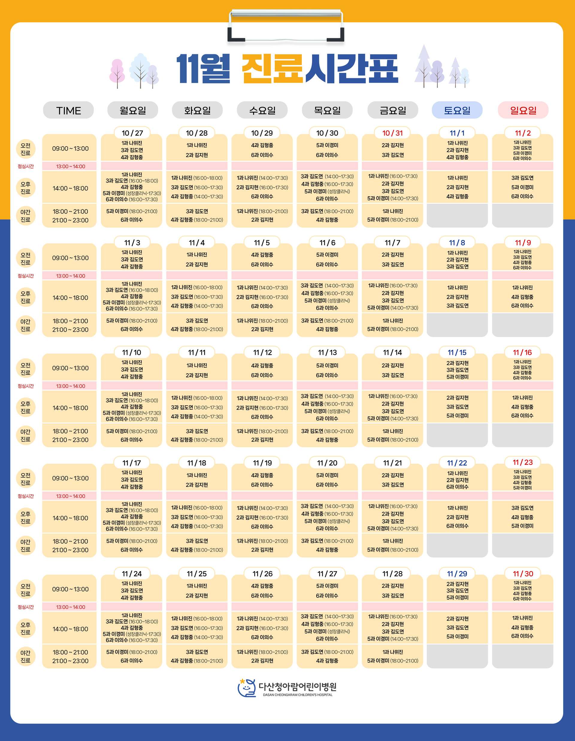 다산청아람어린이병원이 10월 15일(월) 가오픈, 10월 19일(토) 정식 오픈합니다.